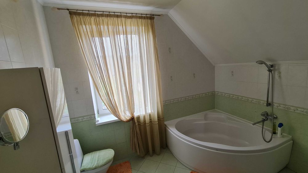 Продаж будинку під Києвом у с. Стоянка; Київська область, с. Стоянка. Будинок площею 223 кв.м. На першому поверсі: кухня-вітальня з каміном, тераса, великий передпокій, с/в, гараж, технічне приміщення. Другий поверх: 3 спальні кімнати, с/в. Будинок з ремонтом, меблями та технікою. Комунікації: 3 кондиціонери (тепло/холод), вода – 2 свердловини (для поливу та для будинку), каналізація – септик (4 люка, 15 кубів), опалення – газ, тепла підлога, електрика – 3 фази. Земельна ділянка 12 соток з газоном, авто поливом, великорозмірними хвойними насадженнями, квітами, кущами та територією для садівництва/городництва. Безпечна тупікова асфальтована вулиця. В пішій доступності ліс, річка, продуктові магазини, ресторани. До Києва на авто 10 хвилин.