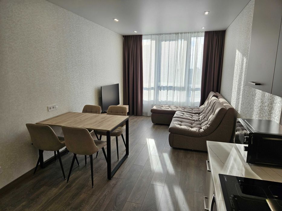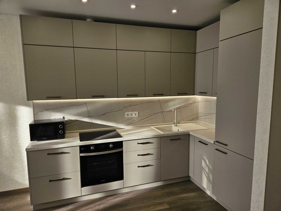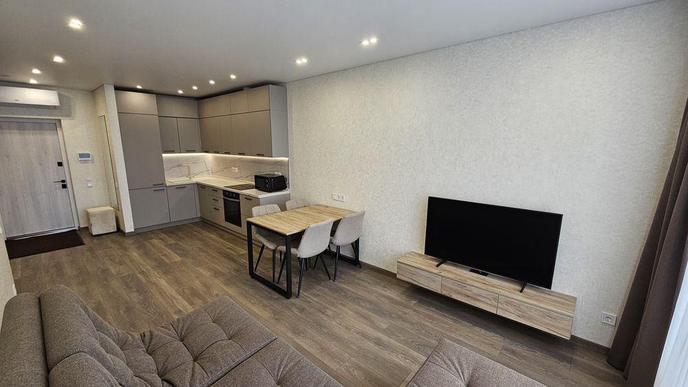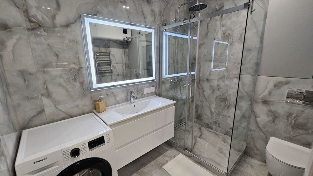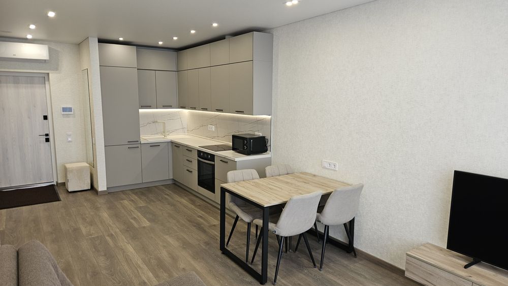 Є вся необхідна техніка: посудомийка, пральна машина+сушка 2в1, бойлер, вбудований холодильник, мікрохвильовка, духова шафа, телевізор-smart 55', кондиціонер. Інтернет оптоволокно - працює при відключенні.