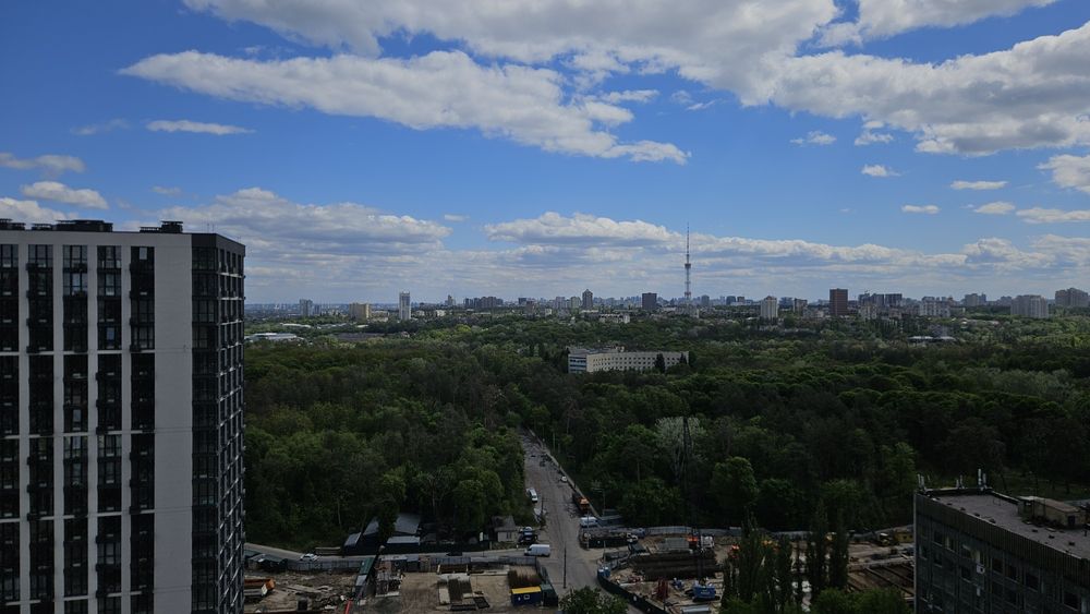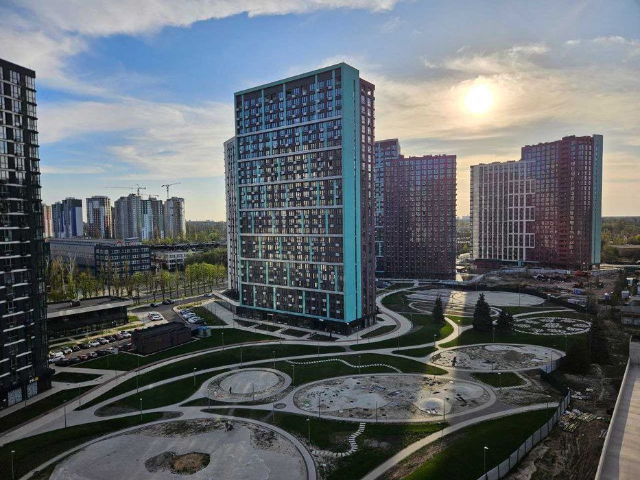 Простора кухня-вітальня, окрема спальня з великим ліжком. Вікна на парк.