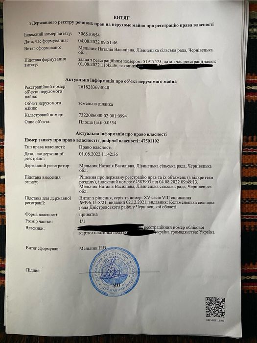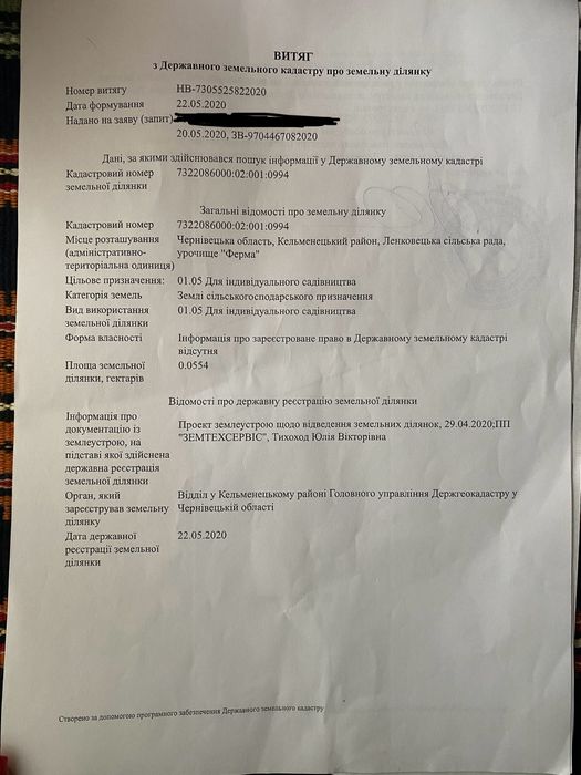 | Земельна ділянка: |