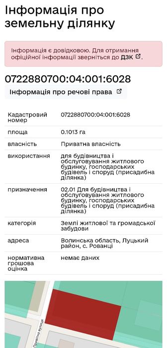 | Земельна ділянка: |