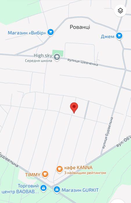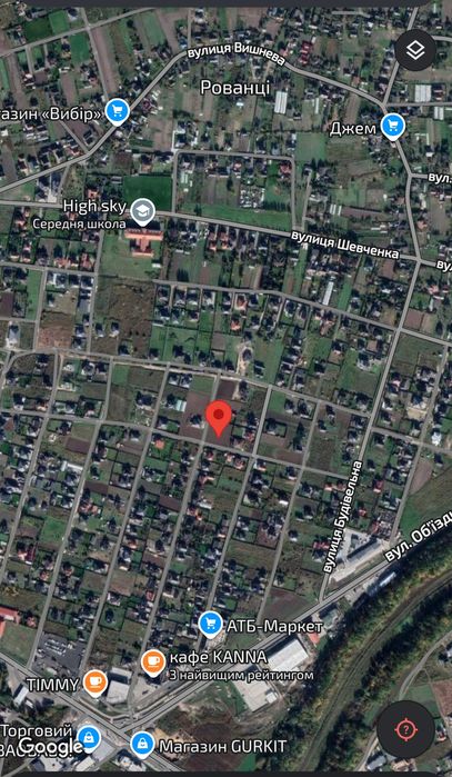 Земельна ділянка в Рованцях, приватизована, з документами; Продам гарну кутову ділянку під забудову в с. Рованці. Приватизована, всі документи в наявності. Площа 10 соток. Дуже зручне та затишне місце для проживання. По вулиці є магістраль газова та централізованого водопостачання. Можливість підключення є. Поруч школа, АТБ, розвинута інфраструктура. Відстань від ТЦ Баобаб 600м.