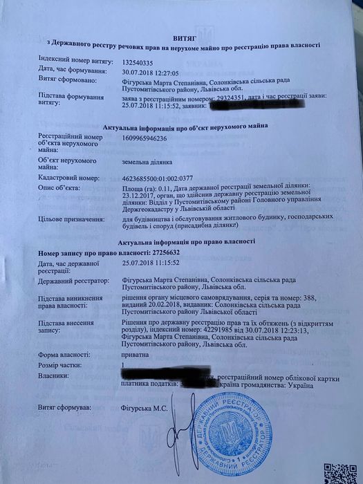| Земельна ділянка: |