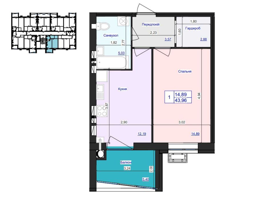 44 м2