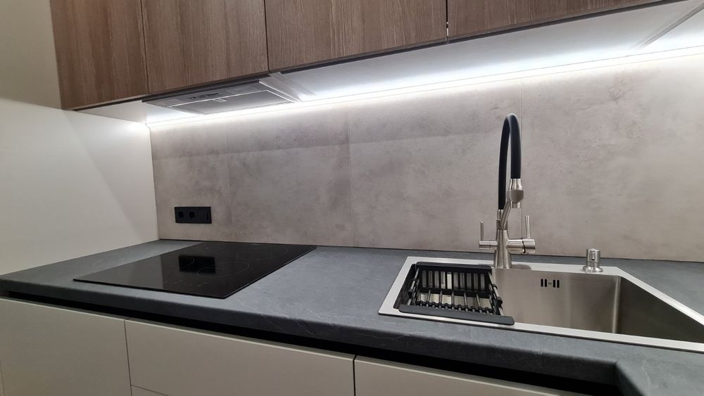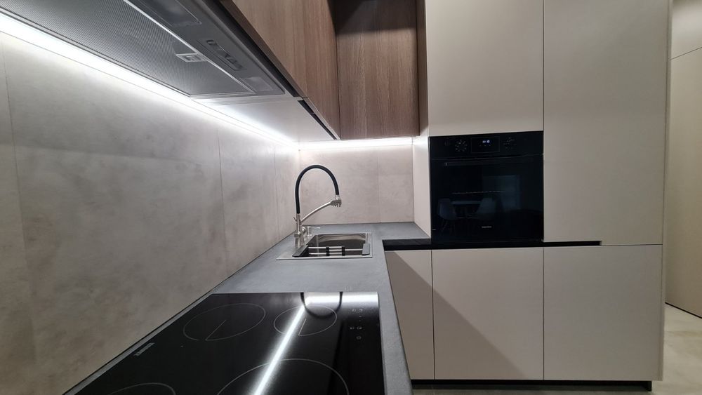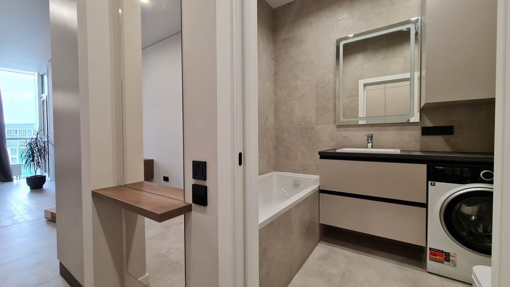 новий ремонт. меблі та дороговартісна нова техніка для дому. Смарт ТВ. Індукційна плита від фірми Zanussi, ,кондиціонер та пральна машина Electrolux, багатофункціональний кухонний змішувач води, вмістовна посудомийка, вбудований холодильник та морозильна камера. А ще підлога з двозональним підігрівом та зручним електрокеруванням до неї.