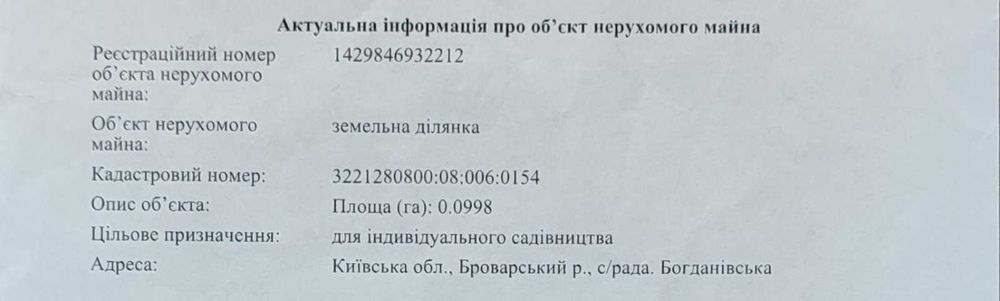 Продам земельну ділянку 10 соток СТ "Родзинка"; Продам земельну ділянку 10 соток. Скибин, СТ "Родзинка". Кадастровий номер 3221280800:08:006:0154 Власник