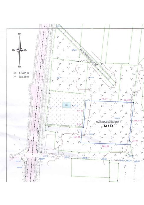 Пропонується прямокутна ділянка (ПАЙ) площею 164 сотки (розміри 140×120 м) у дуже зручному розташуванні: