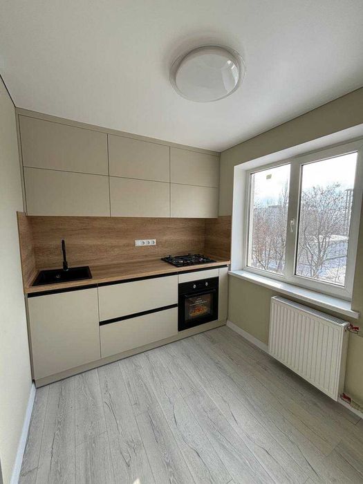 Нова кухня (МДФ) та техніка: духова шафа, варильна поверхня (Beko), холодильник (Samsung), пральна машина (Whirpool), інверторний кондиціонер (Midea), бойлер 80 л (Thermex), кутовий диван, двоспальне ліжко. Меблі можемо залишити, а можемо забрати за домовленістю.