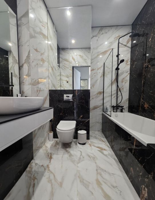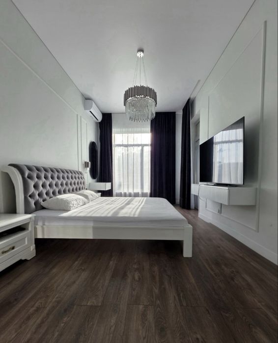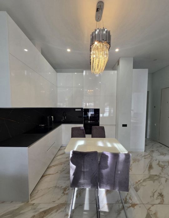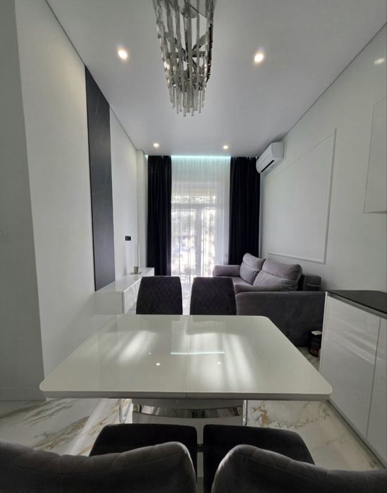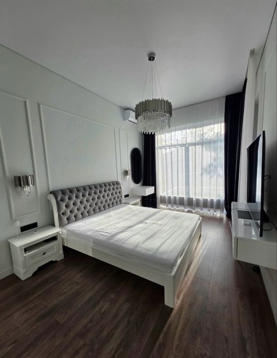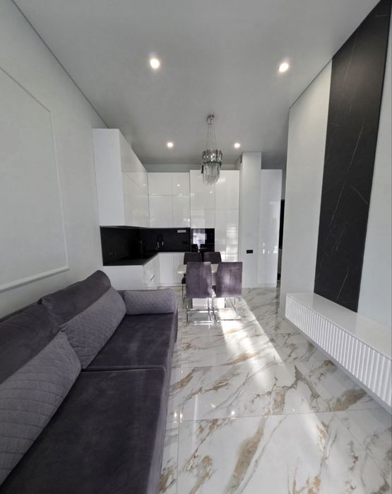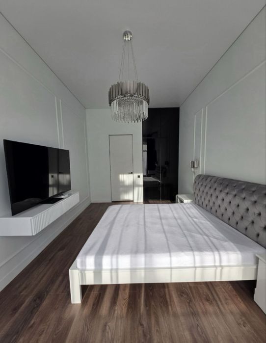 Стильна квартира з індивідуальним дизайнерським ремонтом: спальня, кухня-студія, гардеробна, санвузол.