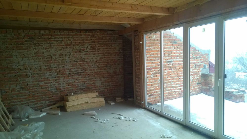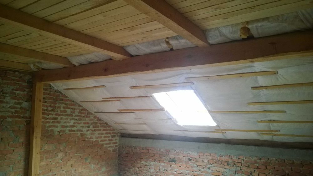 Мансардний поверх – 120 м.кв. Мансардний поверх вже добре утеплений(утеплювач із сендвіч панелі плюс мінвата та дошка).