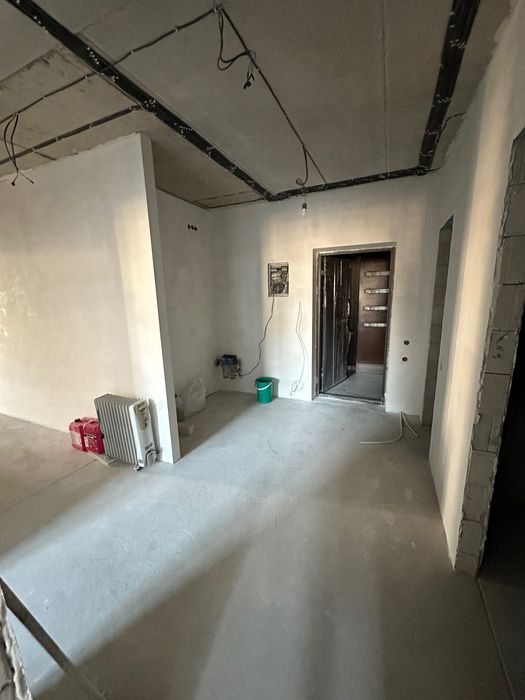 У квартирі вже зроблено опалення, проведено електрику, залита підлога, готові стіни.
