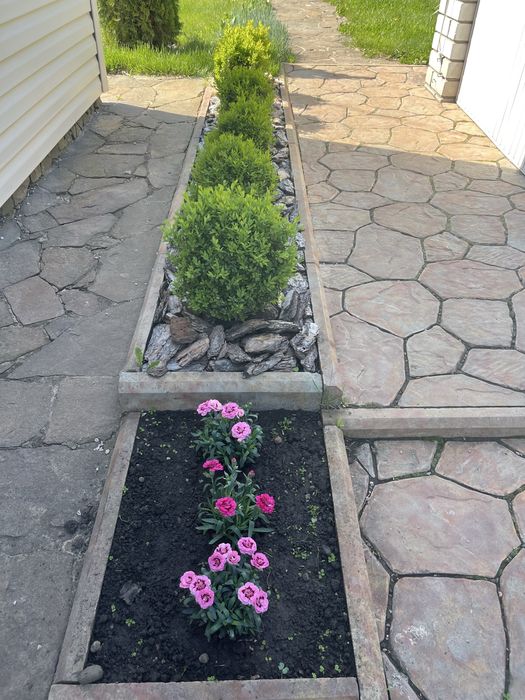 Є сад, багато хвойних рослин