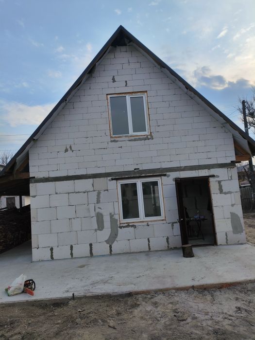 Двоповерховий новозбудований будинок з Газоблоку пластиковими вікнами та металевими дверима.Будинок налічує на першому поверсі 2 кімнати та коридор загальною площею 40.5м²та другий поверх з великою кімнатою .Поли на першому поверсі з Бетону також залита площадка під літню терасу і мається навіс для буд чого.на ділянці 3 сотки є вуличний туалет а також свердловина .7 хвилин від дому пішки протікає річка з гарним пляжем для гарного відпочинку,а також 5 хв від дому кінцева зупинка автобус йде до самого центу міста що є дуже зручно!