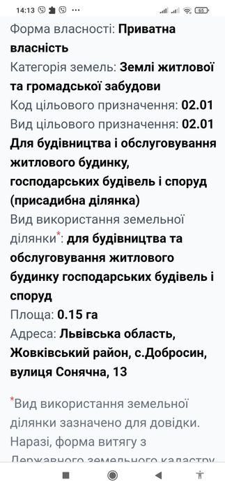 | Земельна ділянка: |