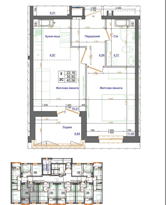 40.56 м2