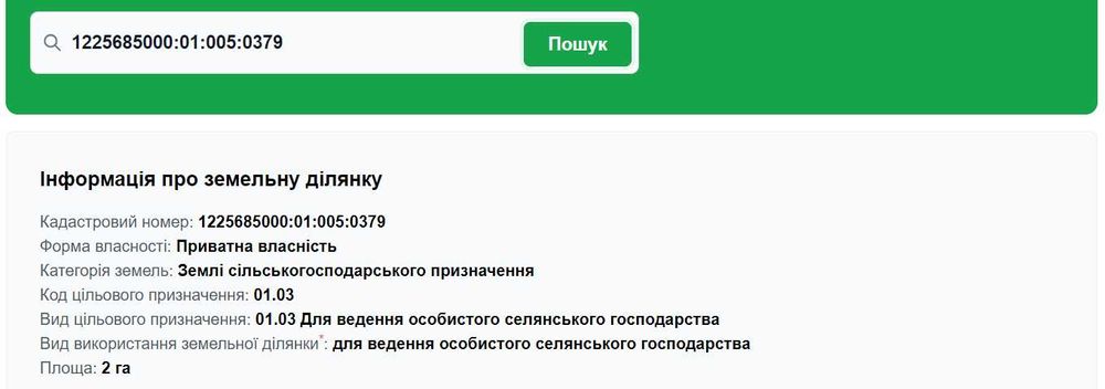 Каастровий номер 1225685000:01:005:0379