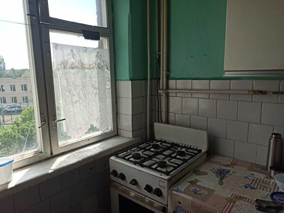 Квартира на 4-тому поверсі; Квартира кутова з балконом, розташована на 4-тому поверсі в цегляному 5-типоверховому будинку, 1-ий під’їзд. Сходинкові марші доглянуті, закритий сухий підвал. В будинку замінені всі центральні водогінні труби (пластик). За будинком доглядає обслуговуюча компанія. Поруч хороші сусіди.