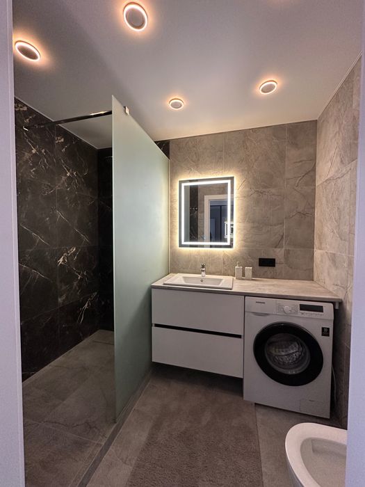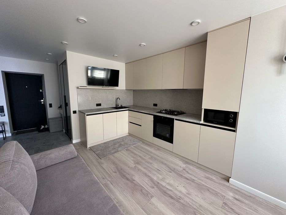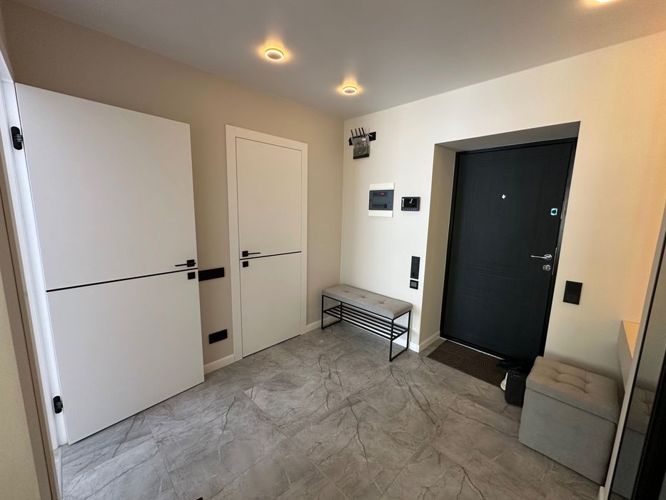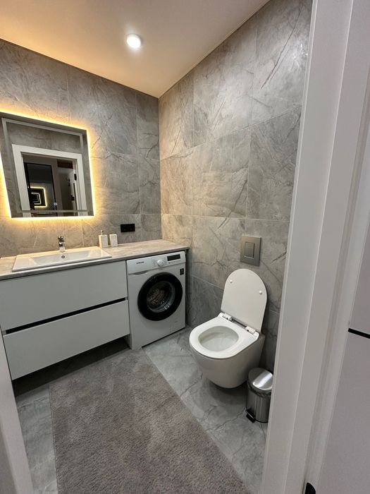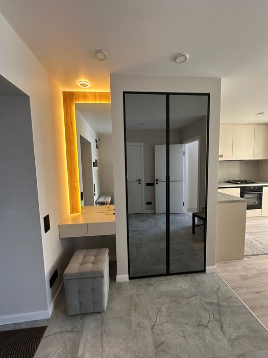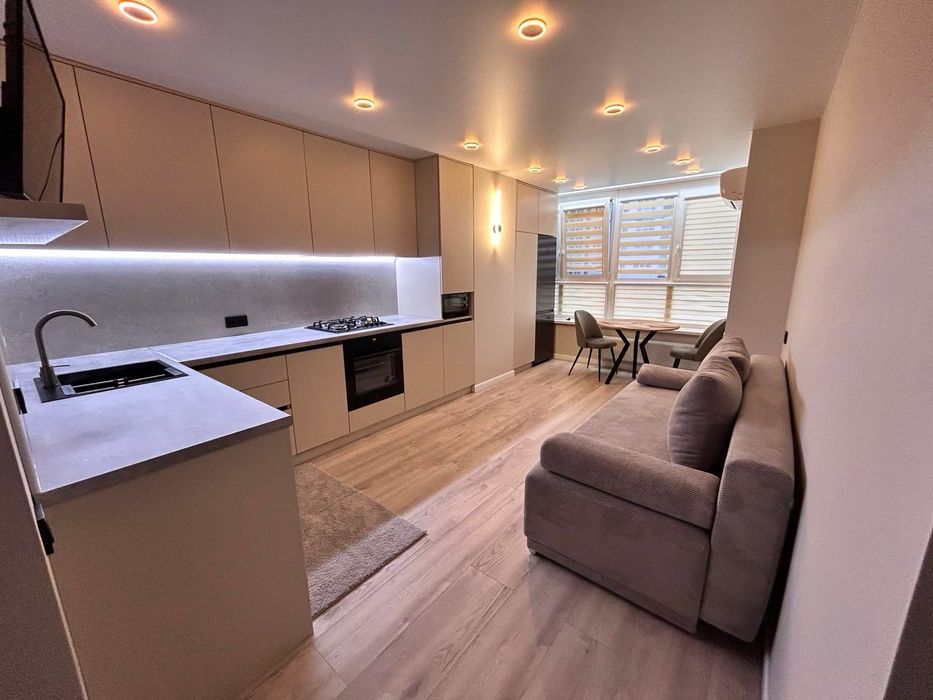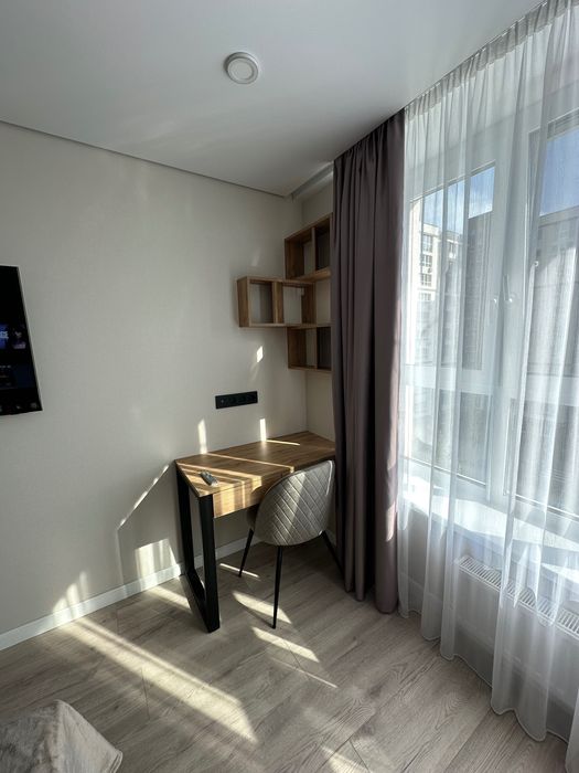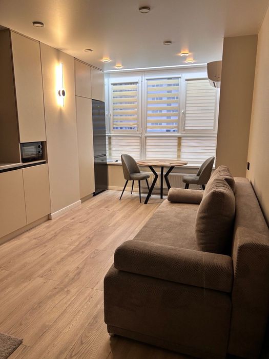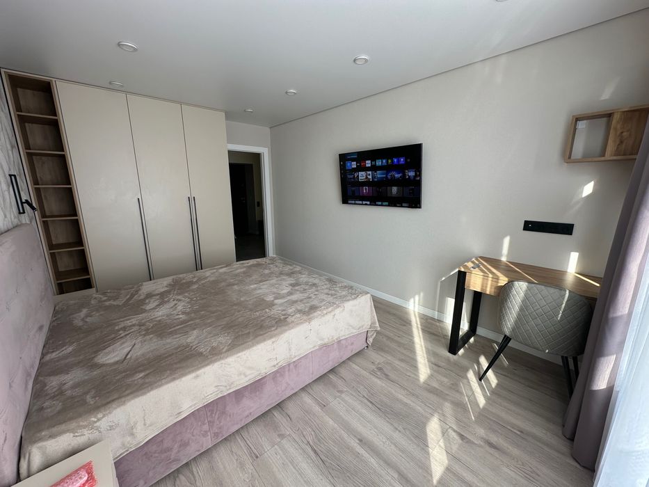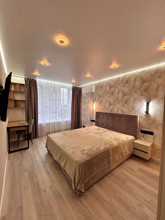 Здам в оренду 1 кімнатну квартиру в Жк Євромісто; Здам в оренду 1 кімнатну квартиру 45,5 кв.м. Виконано якісний ремонт. Має дві роздільні кімнати, кухня студія та спальня. Великий просторий коридор, велика гардеробна, ремонт та меблі зроблено з матеріалів високої якості та смаком. Продумано всі деталі для комфортного та затишного проживання. Ванна кімната обладнана душовим трапом із склянною перегородкою, великою місткою тумбою із двома шухлядами, дзеркалом із подвійною підсвіткою, водяною сушкою рушників, теплою підлогою повністю по ванні. Тепла підлога в коридорі. На кухні є вся необхідна техніка від посудомийки до мікрохвильовки,автономне газове опалення. Квартира світла, тепла, вікна виходять у двір, обладнана двома інвекторними кондиціонерами, двома телевізорами 55 та 42 діагоналлю, домофон має систему відеонагляду. Завжди знайдете місце для паркування, жк має свою охорону та відеонагляд. Поруч всі необхідні магазини. До Києва 3 км, на авто 10хв, маршруткою до метро 20хв. Є прямі маршрутки до метро ВДНХ та Контрактова площа.Без комісії.