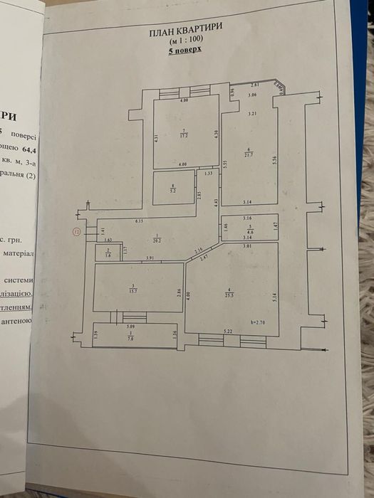 Висота приміщень 2,70 м