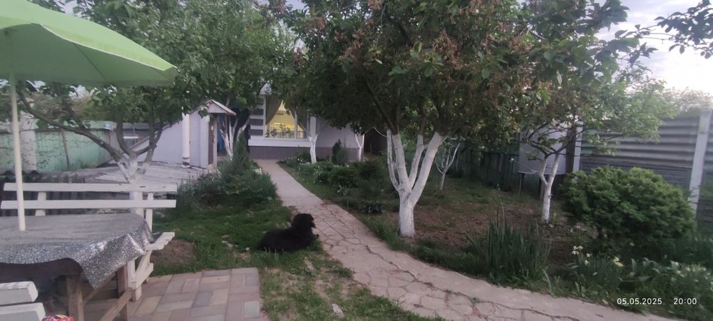 Одна частина огород ,інша,там де будинок ,сад ,баня,квітник.