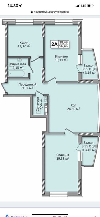 96 м2