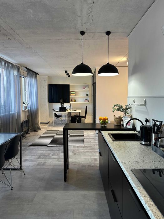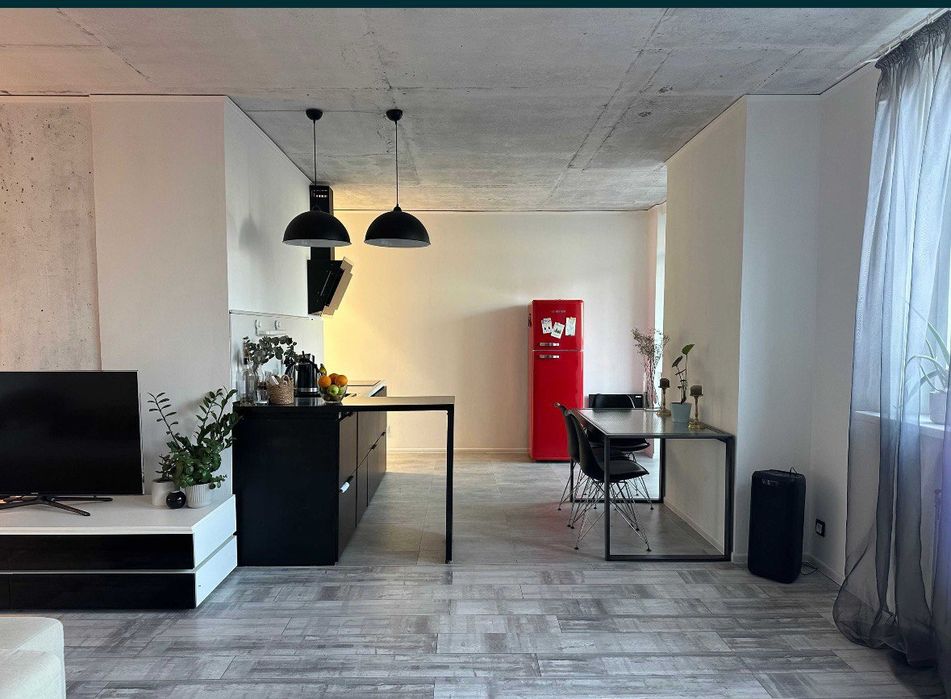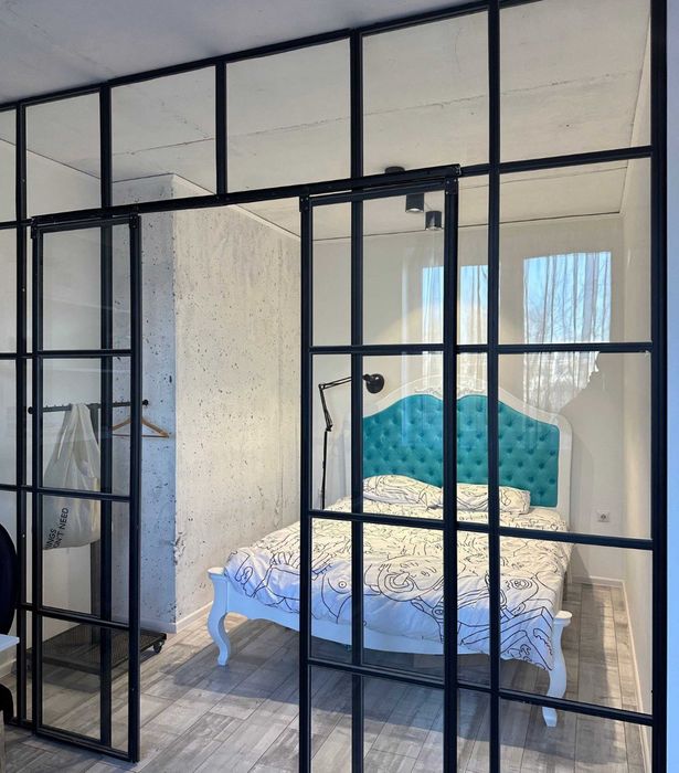 У квартирі, зона відпочинку з Smart ТВ-Wifi, окрема спальня з прозорою перегородкою та прохідна гардеробна велика лоджія.