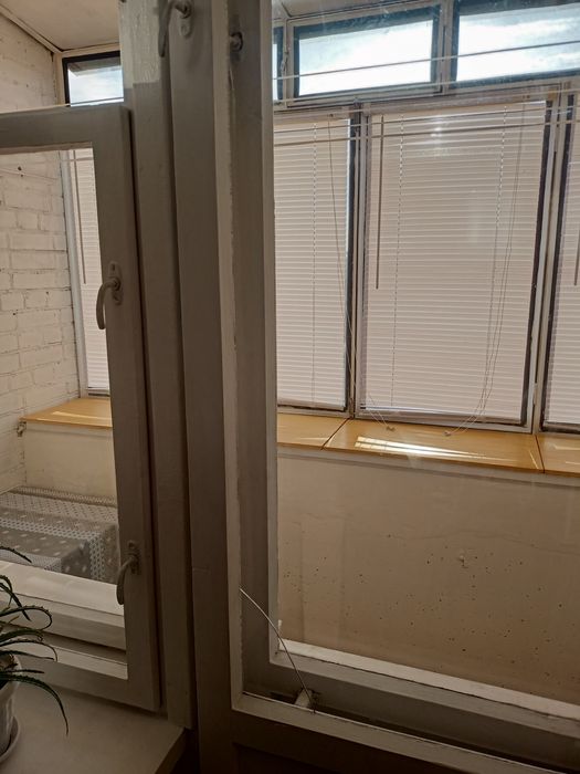 Мала кімната шафа ліжко стіл з виходом на засклений балкон з жалюзями.Кондиціонер.