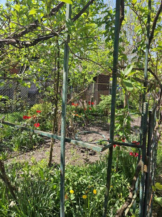 Сад: фруктові дерева , кущі, виноград які дають потужний врожай, чорнозем.