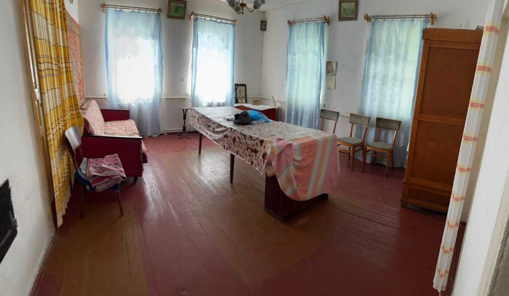 Будинок цегляний, 1971 року, високі стелі. Опалення — газ + піч на дровах. Газ заведений, без боргів.