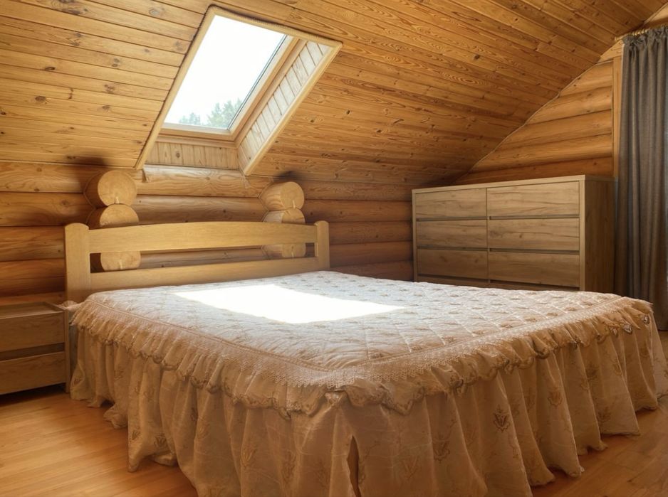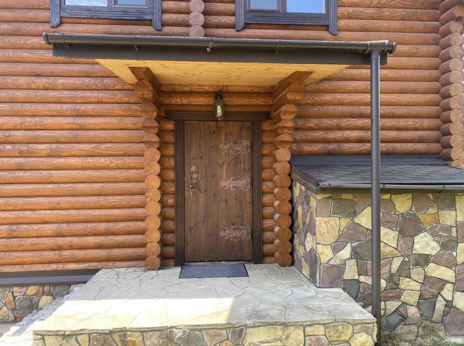 Будинок побудований з дерева із застосуванням екоіарб.