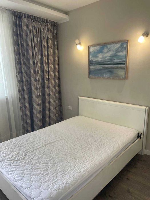 В квартирі наявна вся необхідна техніка, диван (розкладний, для щоденного сну) та двоспальне ліжко. Зі спальні вихід на балкон з панорамниии вікнами.