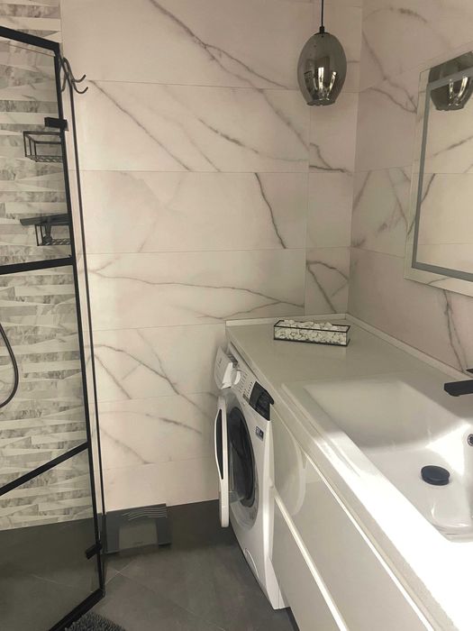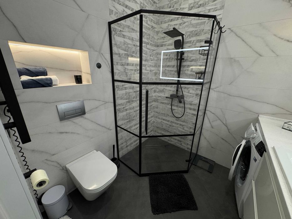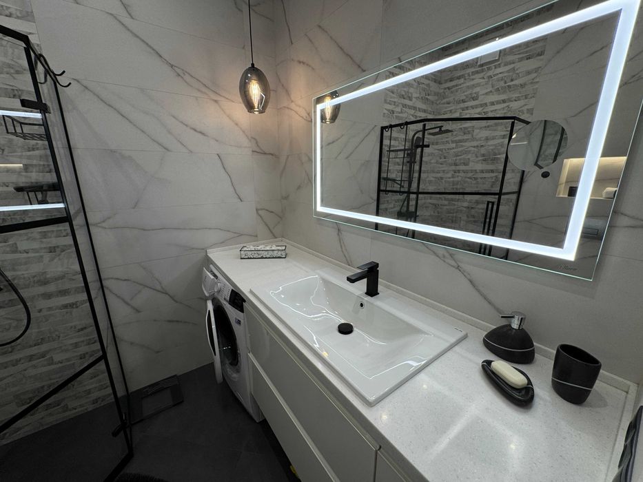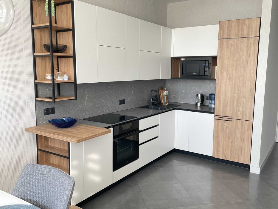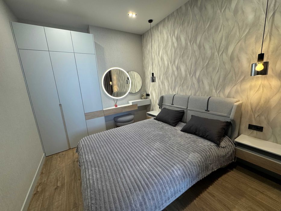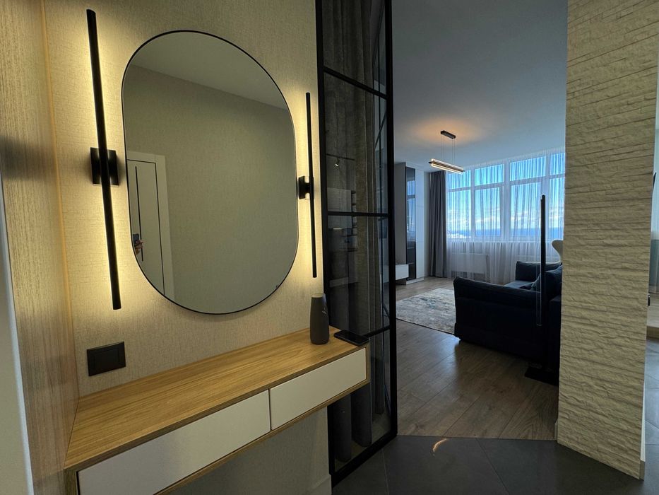 Квартира оформлена в стилі Лофт. Вбудована кухня, укомплектована побутовою технікою ,мікрохвильова піч, електродуховка . Два ЖК телевізори с smart-tv, інтернет , кондиціонер. Спальня з двоспальним ліжком, у вітальні розкладний диван. Санвузол суміжний, туалет/душова кабіна, прально-сушильна машина. Додатково можно орендувати паркомісце в підземному паркінгу.