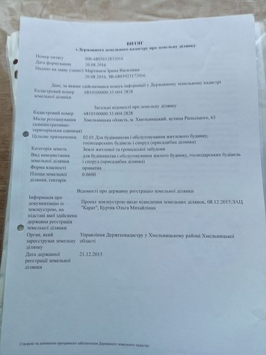 | Земельна ділянка: |