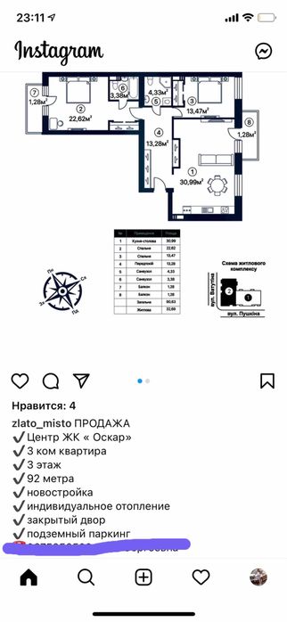 Трикімнатна квартира в ЖК "Оскар"; Продається 3-кімнатна квартира в новобудові ЖК "Оскар"!