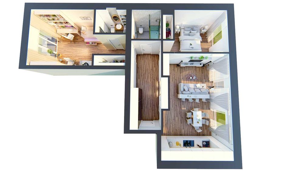 Сучасне планування: окремі кімнати, простір використано максимально ефективно.
