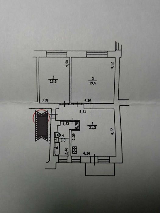 60м, 2 роздільних кімнати, 13м, 19м, кухня-студія 17м.