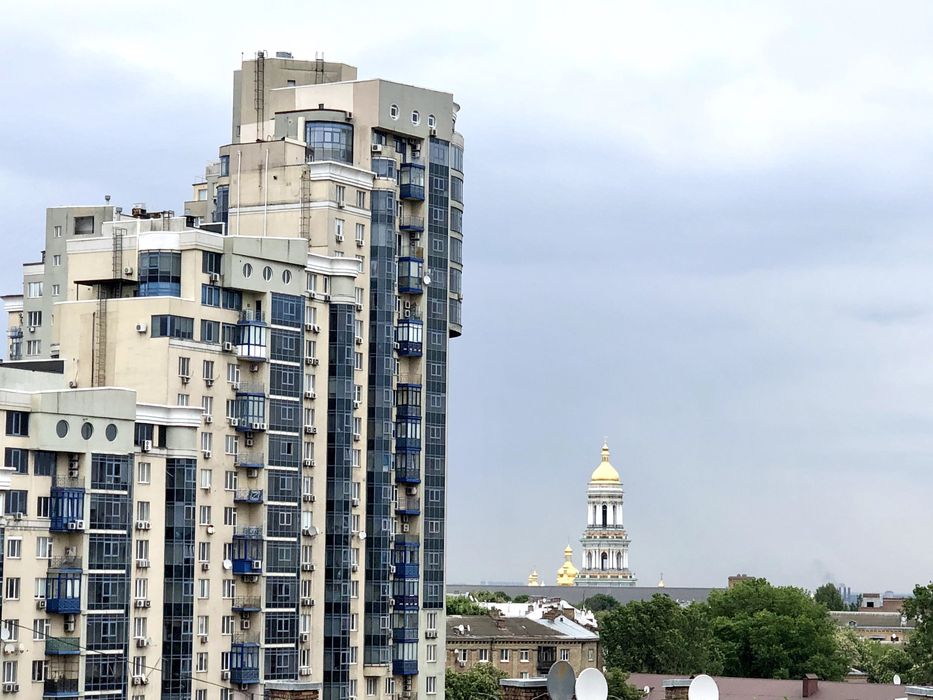 Квартира світла та простора, видова з широкими вікнами. Вид на купол Верховної ради та дзвіницю Лаври. Вікна виходять у двір. В квартирі тихо (шум машин мінімальний). Поряд супермаркет, ринок, банк, пошта, поліція, генерална прокуратура. До метро Печерська 7 хв пішки.