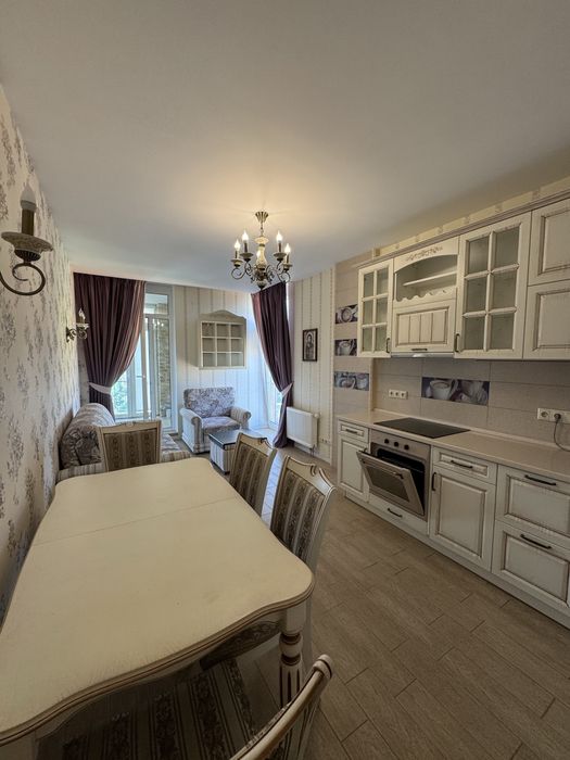 В квартирі виконано високоякісний ремонт в класичному стилі. Є все необхідне для комфортного проживання. Кухня-вітальня зі зручним диваном та кріслом, суміщений санвузол з душем, окрема спальня з великим ліжком і ортопедичним матрацом.