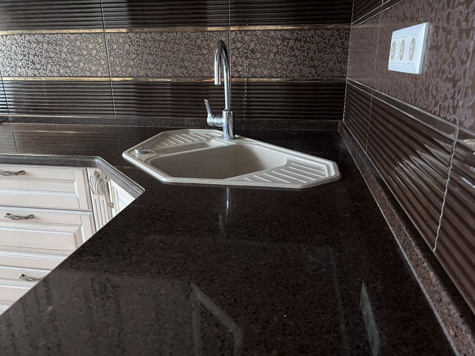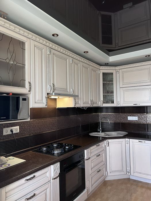 * Кухня- індивідуальне замовлення із ясена та натурального каменю стільниця, посудомийна машинка, витяжка, газова скляна поверхня та духова електрична шафа, холодильник, телевізор, мікрохвильова піч. Встановлено програматор для газового котла, який дозволяє автоматично регулювати температуру в приміщенні та оптимізувати роботу котла.