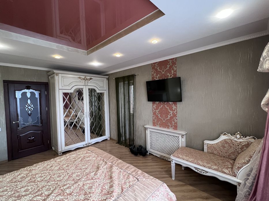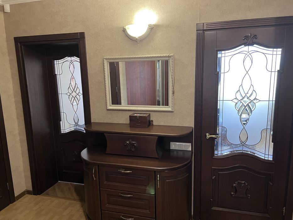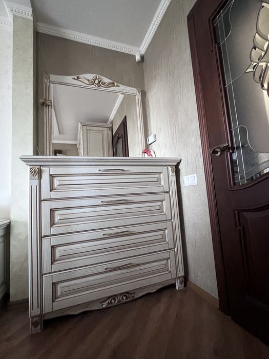 * Спальня- меблі індивідуальне замовлення із ясена: шафа із дзеркальними фацетами, велике ліжко із ясена 2,0*1,8 та автоматичним підйомником з місцем для зберігання постільної білизни, великий комод із дзеркалом, приліжкові 2тумби та приліжкова банкетка.