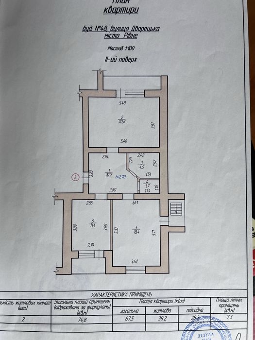 Загальна площа: 74,8м² Житлова площа:39,2 м²