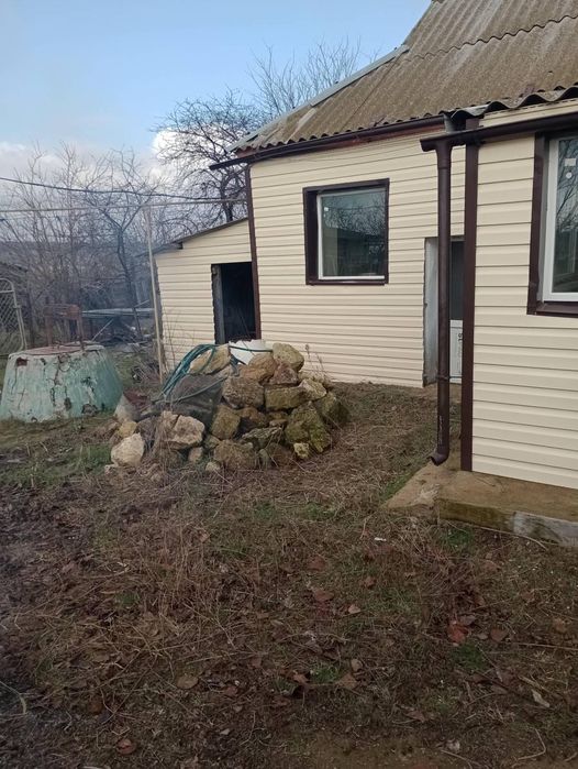 Будинок в с. Марївка вул. Бодюка 77; Продам будинок 2 кімн.2 коридори і невеличка добудова до будинку, де планувалось робитися кухня та вана з туалетом. Город , сад ( 25 сот.),погріб і літня кухня на 2 кімн.Ремонт робився тільки з наружі 3 роки тому в середні потрібно робити ремонт. В будинку є світло,газ,вода (сважина),інтернет. Якщо зацікавить звоніть пешіть, переоформлення,пополам.