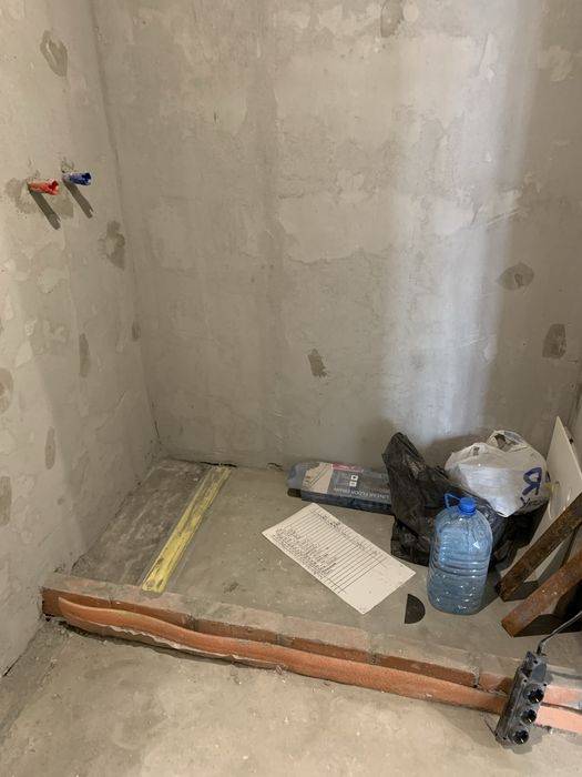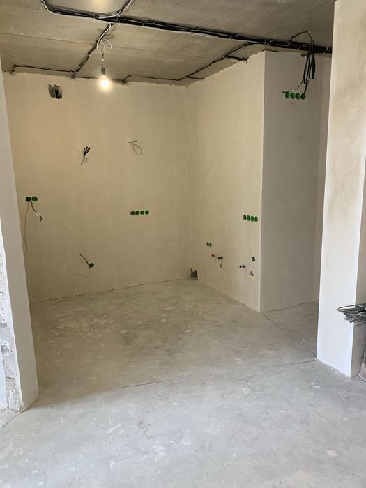 Зроблені: стяжка, машинна штукатурка, електрика, сантехніка. Стоять батареї. Також зроблена тепла підлога. Інсталяція, трап під душову, траси під кондиціонери.