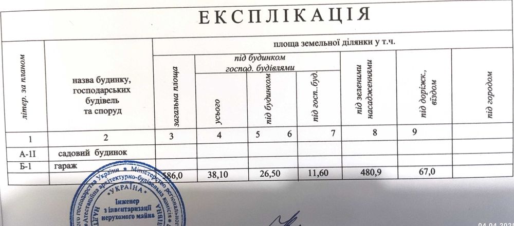 | Земельна ділянка: |