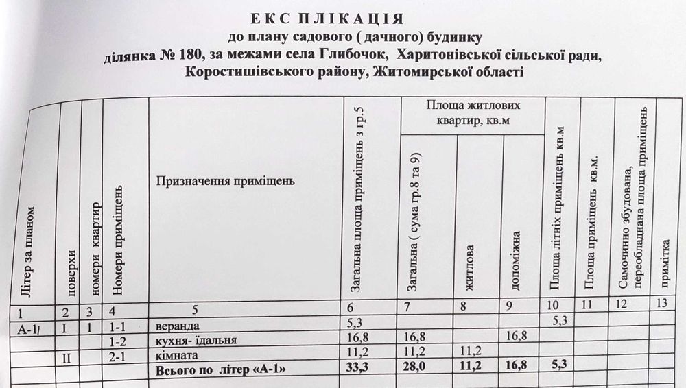 Продаж двоповерхової дачі в садовому кооперативі; Продається приватизована земельна ділянка (6 соток) із 2-х поверховим будинком і верандою та гаражем. Дача знаходиться на дачному масиві «Луки» біля села Глибочок у підпорядкуванні Харитонівської сільради Коростишівського району Житомирської обл. Дерев’яні будинок та гараж додатково обкладені цеглою. Пічне опалення, електроенергія, вода підведена в будинок (у дворі дві свердловини), вимурований басейн, теплиця, літня душова кабінка та туалет, дві альтанки, велика металева ємність для дощової води з краном. Усі внутрішні стіни в будинку облицьовані дерев’яною вагонкою, вікна заґратовані, оздоблені кімнати повністю умебльовані, є також бойлер, холодильник, телевізор (антена – тарілка). У садочку яблуні, груші, сливи, різні сорти винограду, лохина та ін.