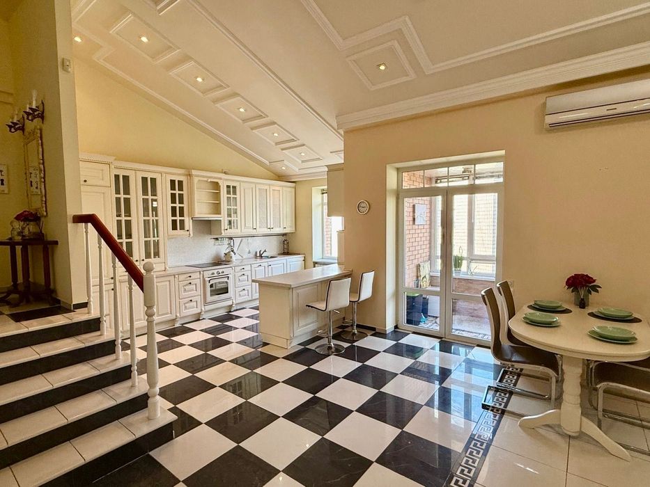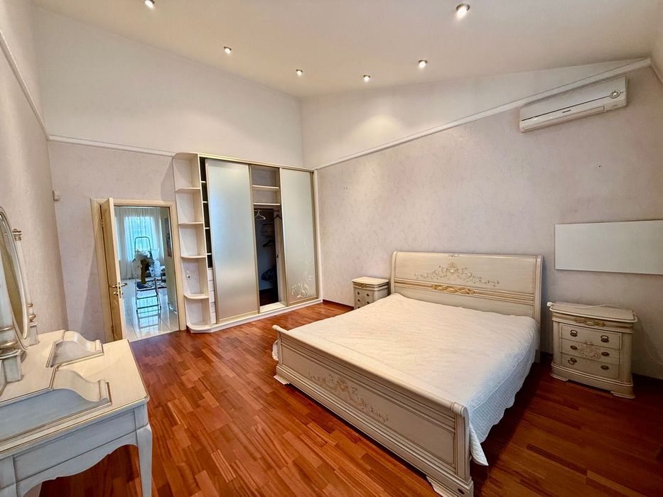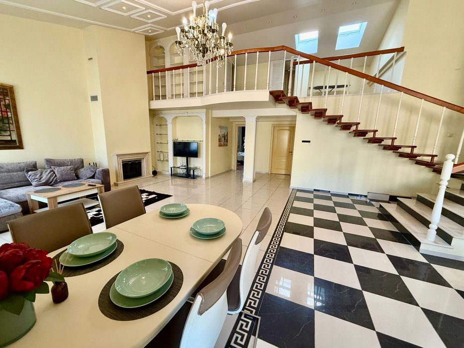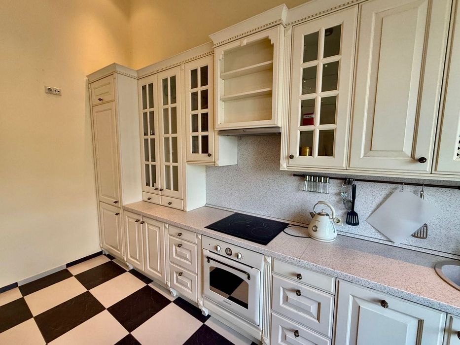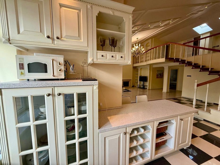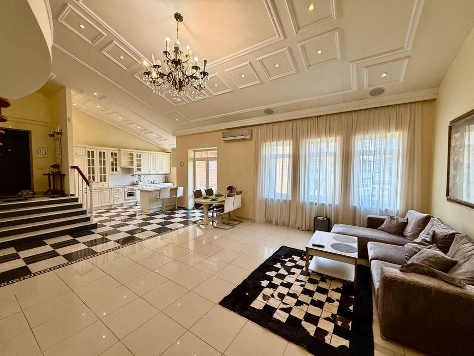 Печерський; Оренда преміум квартири вул. Панаса Мирного; Вишукана та простора дворівнева квартира площею 160 м² у престижному будинку на Печерську. Квартира з якісним дизайнерським ремонтом, повністю мебльована: дві окремі спальні з вбудованими шафами-купе, велика вітальня з діючим каміном, кухня-студіо з вікнами у тихий двір, відкрита тераса 22,5 м² з видом на Київ. Високі стелі — 5 м, друге світло, три гардеробні (одна — простора в головній спальні), один санвузол з ванной. Квартира двостороння: спальні виходять на вул. П. Мирного, вітальня та кухня — у двір. В будинку є консьєрж, ліфт, бойлер, сучасна побутова техніка, тепла підлога, інтернет, охорона. Ідеальний варіант для комфортного життя в самому центрі Києва.