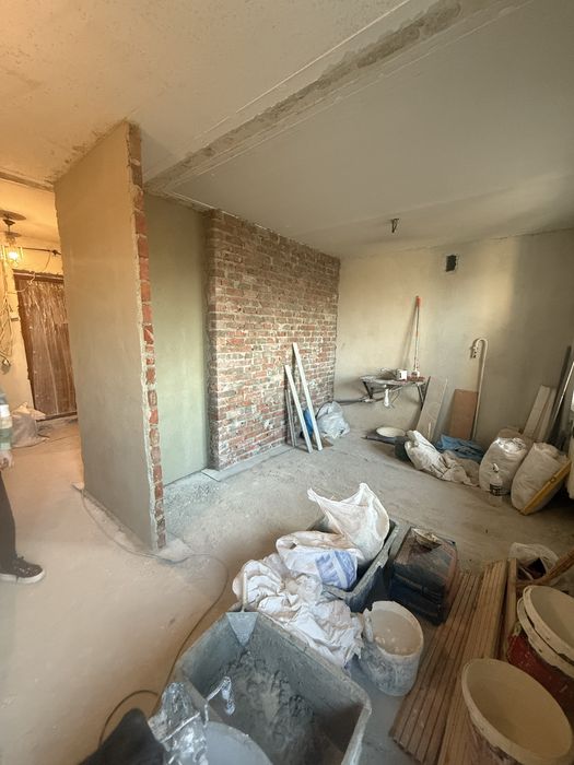 • Залита стяжка, стіни вимуровані та поштукатурені