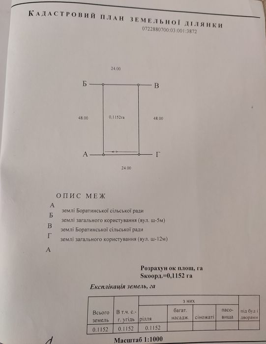 | Земельна ділянка: |