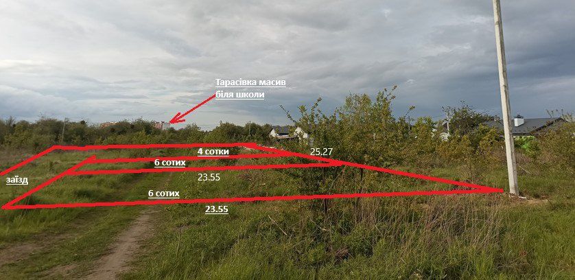 Продам земельну ділянку с.Трасівка Боярська отг; Пропоную земельну ділянку в с Тарасівка. Боярська отг. Фастівського р-н. 6- сотих, переведений під забудову. Біля ділянки проходить лінія ел.передач державна, є можливість підключення по держ. ціні. Ділянка правильної форми 25,26х 23,55. Пішої ходи до вул. Білогородська в районі Венса приблизно 800 метрів, до переїзду 1.5 км. Сусіди інтенсивно будуються. Або обміняю на квартиру 12 сотих без доплати. Телефонуйте домовимся.