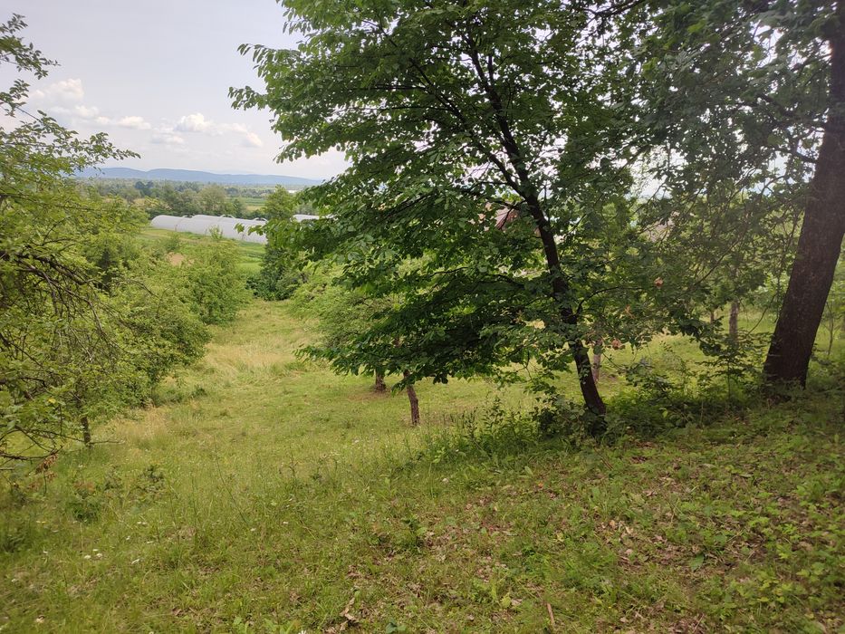На ділянці росте фруктовий сад і неподалік ліс